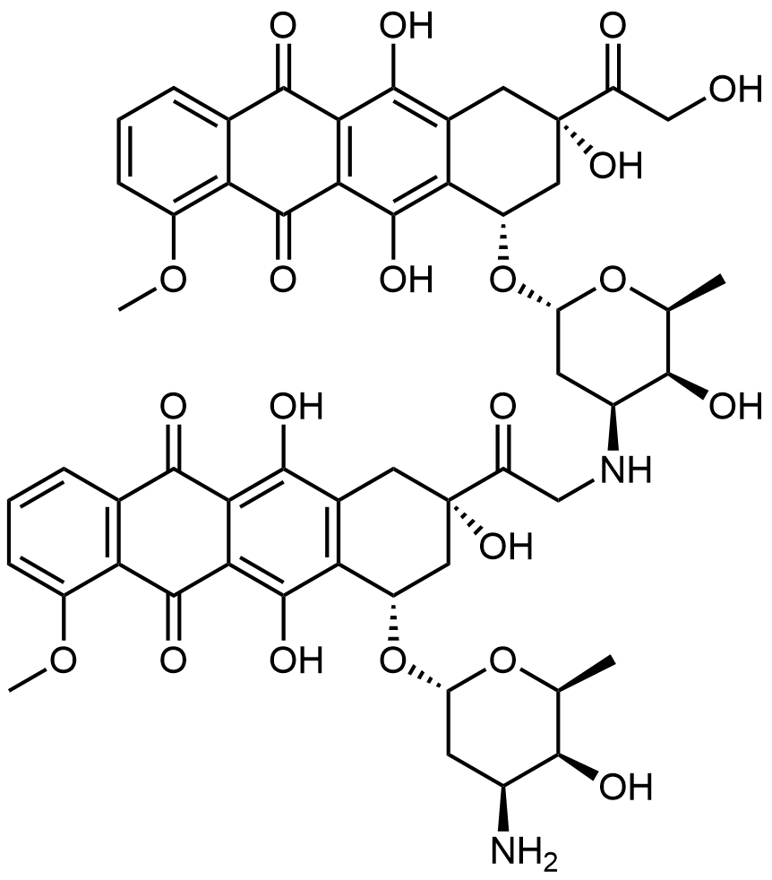 Synonyms: (8S,10S)-10-(((2R,4S,5S,6S)-4-amino-5-hydroxy-6-methyltetrahydro-2H-pyran-2-yl)oxy)-6,8,11-trihydroxy-8-(((2S,3S,4S,6R)-3-hydroxy-2-methyl-6-(((1S,3S)-3,5,12-trihydroxy-3-(2-hydroxyacetyl)-10-methoxy-6,11-dioxo-1,2,3,4,6,11-hexahydrotetracen-1-yl)oxy)tetrahydro-2H-pyran-4-yl)glycyl)-1-methoxy-7,8,9,10-tetrahydrotetracene-5,12-dione