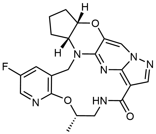 Synonyms: (13E,14E,15aR,18aS,5S)-35-fluoro-5-methyl-15,15a,16,17,18,18a-hexahydro-4-oxa-7-aza-1(5,3)-cyclopenta[b]pyrazolo[1',5':1,2]pyrimido[4,5-e][1,4]oxazina-3(3,2)-pyridinacyclooctaphan-8-one
