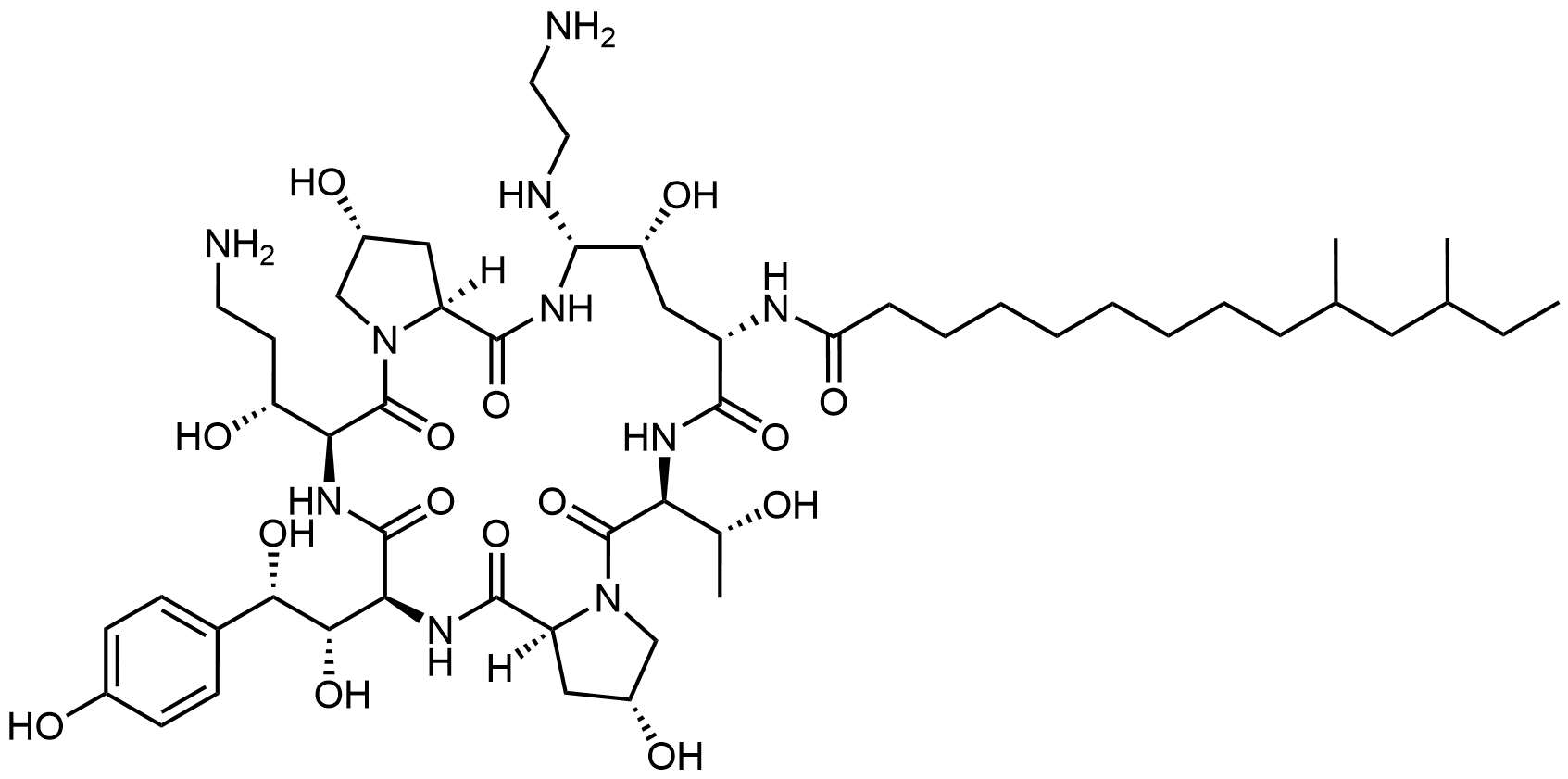 Synonyms: (10R,12S)-N-((2R,6S,9S,11R,12S,14aS,15S,20S,23S,25aS)-20-((R)-3-amino-1-hydroxypropyl)-12-((2-aminoethyl)amino)-23-((1S,2S)-1,2-dihydroxy-2-(4-hydroxyphenyl)ethyl)-2,11,15-trihydroxy-6-(hydroxymethyl)-5,8,14,19,22,25-hexaoxotetracosahydro-1H-dipyrrolo[2,1-c:2',1'-l][1,4,7,10,13,16]hexaazacyclohenicosin-9-yl)-10,12-dimethyltetradecanamide