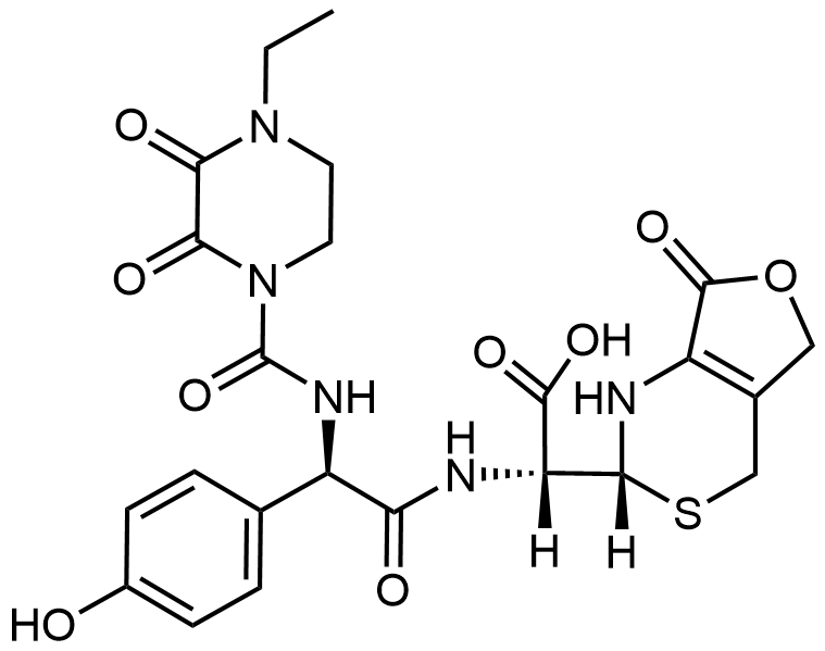 Synonyms: (R)-2-((R)-2-(4-ethyl-2,3-dioxopiperazine-1-carboxamido)-2-(4-hydroxyphenyl)acetamido)-2-((R)-7-oxo-1,2,5,7-tetrahydro-4H-furo[3,4-d][1,3]thiazin-2-yl)acetic acid
