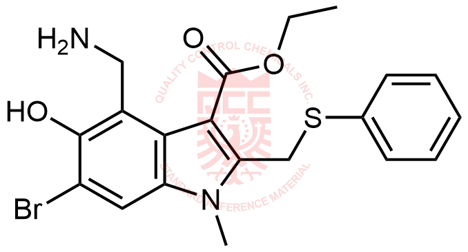 Synonyms: ethyl 4-(aminomethyl)-6-bromo-5-hydroxy-1-methyl-2-((phenylthio)methyl)-1H-indole-3-carboxylate