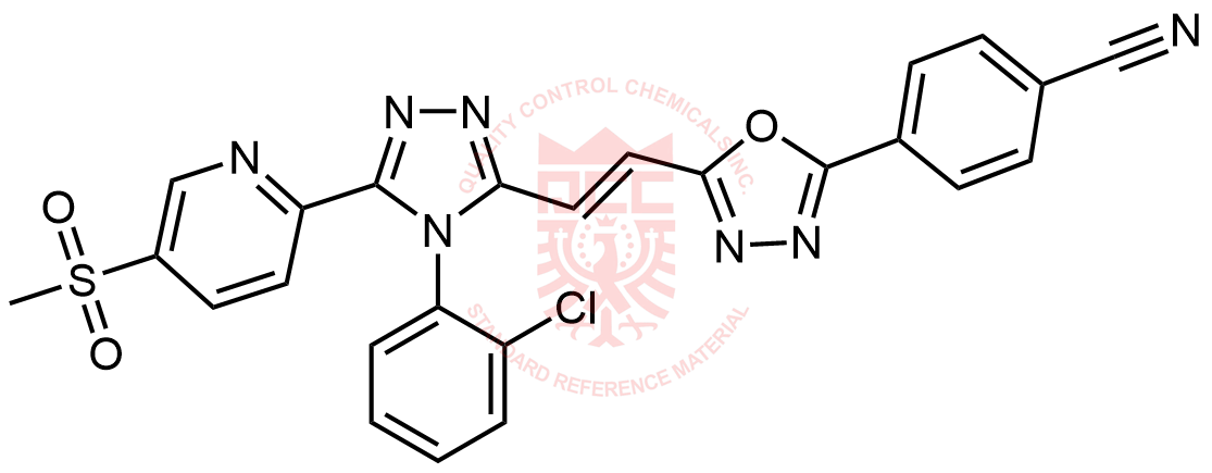 Synonyms: (E)-4-(5-(2-(4-(2-chlorophenyl)-5-(5-(methylsulfonyl)pyridin-2-yl)-4H-1,2,4-triazol-3-yl)vinyl)-1,3,4-oxadiazol-2-yl)benzonitrile
