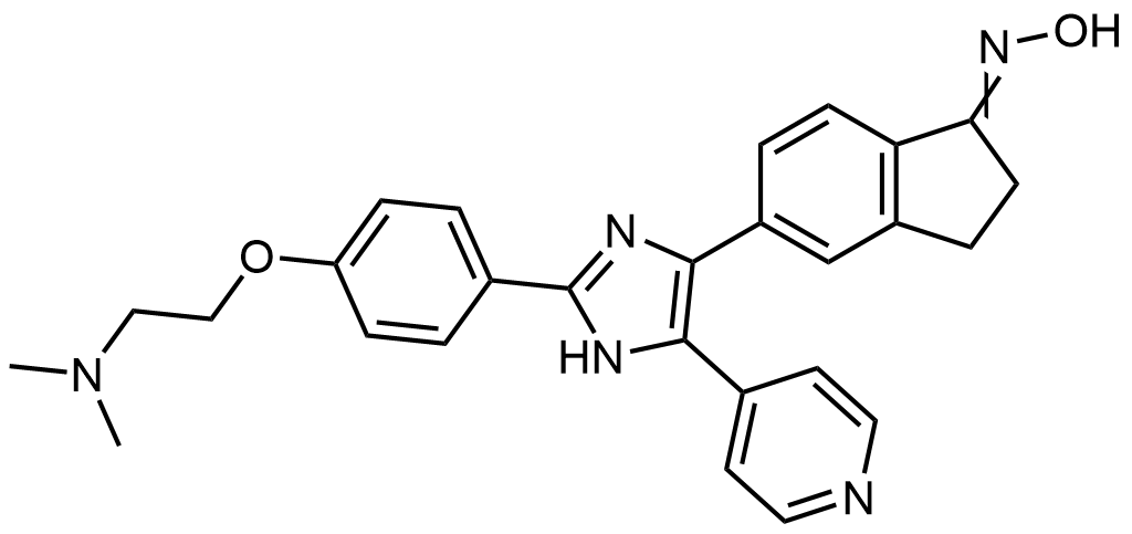 Synonyms: 5-(2-(4-(2-(dimethylamino)ethoxy)phenyl)-5-(pyridin-4-yl)-1H-imidazol-4-yl)-2,3-dihydro-1H-inden-1-one oxime