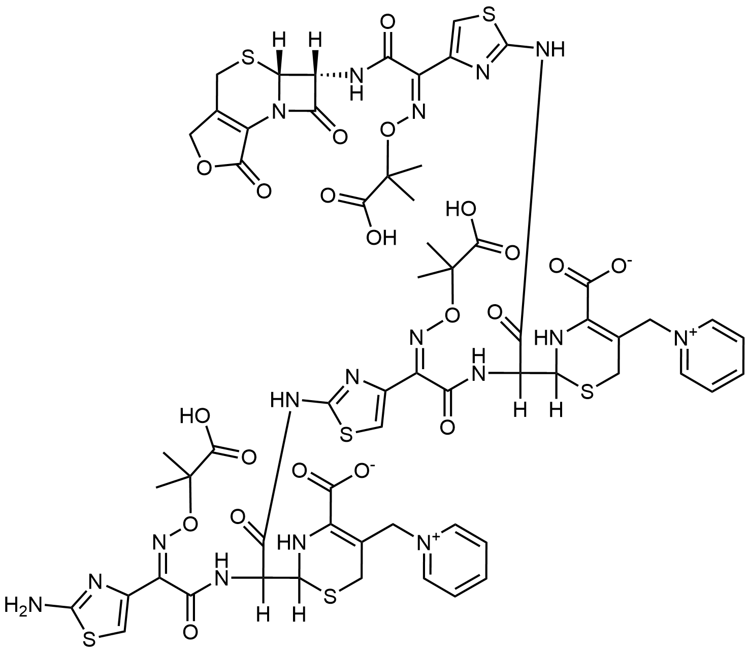 Synonyms: 2-(1-((Z)-2-(2-aminothiazol-4-yl)-2-(((2-carboxypropan-2-yl)oxy)imino)acetamido)-2-((4-((Z)-2-((1-(4-carboxylato-5-(pyridin-1-ium-1-ylmethyl)-3,6-dihydro-2H-1,3-thiazin-2-yl)-2-((4-((Z)-1-(((2-carboxypropan-2-yl)oxy)imino)-2-(((5aR,6R)-1,7-dioxo-1,4,5a,6-tetrahydro-3H,7H-azeto[2,1-b]furo[3,4-d][1,3]thiazin-6-yl)amino)-2-oxoethyl)thiazol-2-yl)amino)-2-oxoethyl)amino)-1-(((2-carboxypropan-2-yl)oxy)imino)-2-oxoethyl)thiazol-2-yl)amino)-2-oxoethyl)-5-(pyridin-1-ium-1-ylmethyl)-3,6-dihydro-2H-1,3-thiazine-4-carboxylate