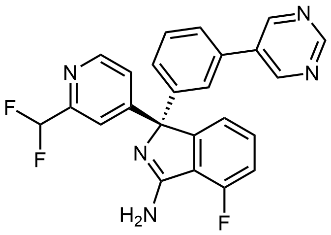 Synonyms: (S)-1-(2-(difluoromethyl)pyridin-4-yl)-4-fluoro-1-(3-(pyrimidin-5-yl)phenyl)-1H-isoindol-3-amine