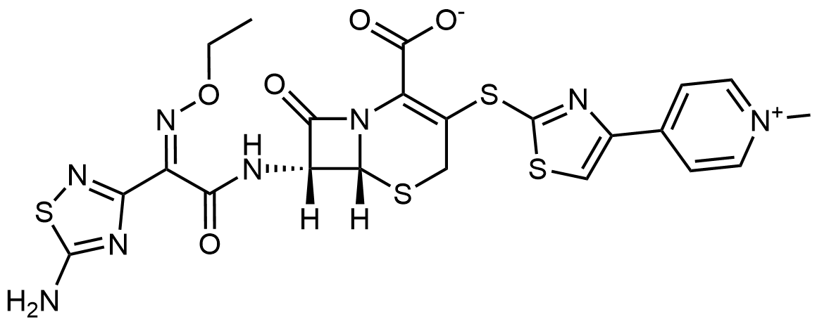 Synonyms: (6R,7R)-7-((Z)-2-(5-amino-1,2,4-thiadiazol-3-yl)-2-(ethoxyimino)acetamido)-3-((4-(1-methylpyridin-1-ium-4-yl)thiazol-2-yl)thio)-8-oxo-5-thia-1-azabicyclo[4.2.0]oct-2-ene-2-carboxylate