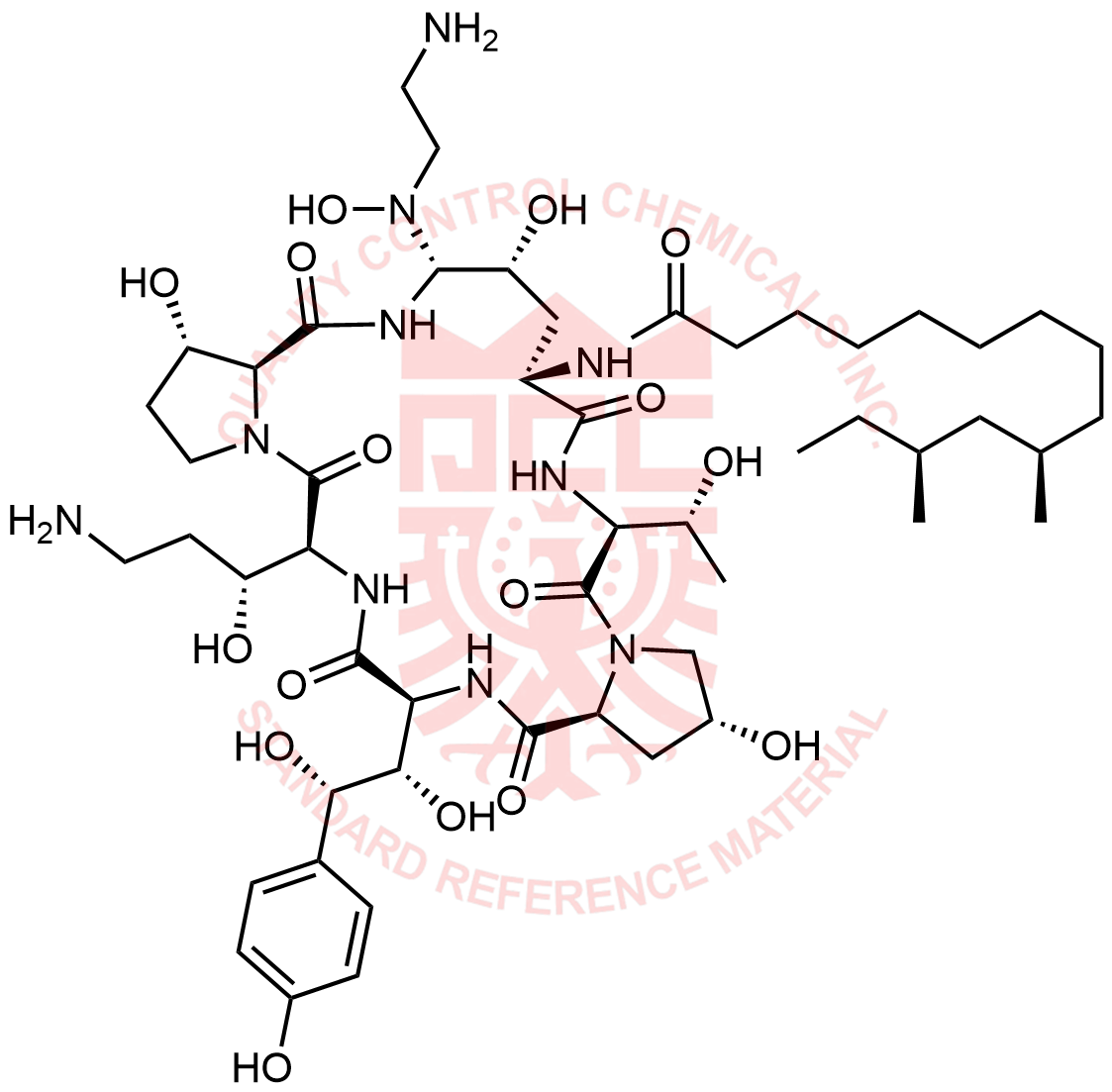 Synonyms: (10R,12S)-N-((2R,6S,9S,11R,12R,14aS,15S,20S,23S,25aS)-20-((R)-3-amino-1-hydroxypropyl)-12-((2-aminoethyl)(hydroxy)amino)-23-((1S,2S)-1,2-dihydroxy-2-(4-hydroxyphenyl)ethyl)-2,11,15-trihydroxy-6-((R)-1-hydroxyethyl)-5,8,14,19,22,25-hexaoxotetracosahydro-1H-dipyrrolo[2,1-c:2',1'-l][1,4,7,10,13,16]hexaazacyclohenicosin-9-yl)-10,12-dimethyltetradecanamide