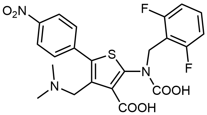 Synonyms: 2-(carboxy(2,6-difluorobenzyl)amino)-4-((dimethylamino)methyl)-5-(4-nitrophenyl)thiophene-3-carboxylic acid
