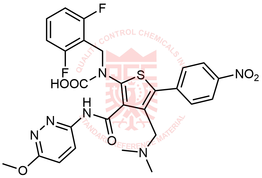 Synonyms: (2,6-difluorobenzyl)(4-((dimethylamino)methyl)-3-((6-methoxypyridazin-3-yl)carbamoyl)-5-(4-nitrophenyl)thiophen-2-yl)carbamic acid