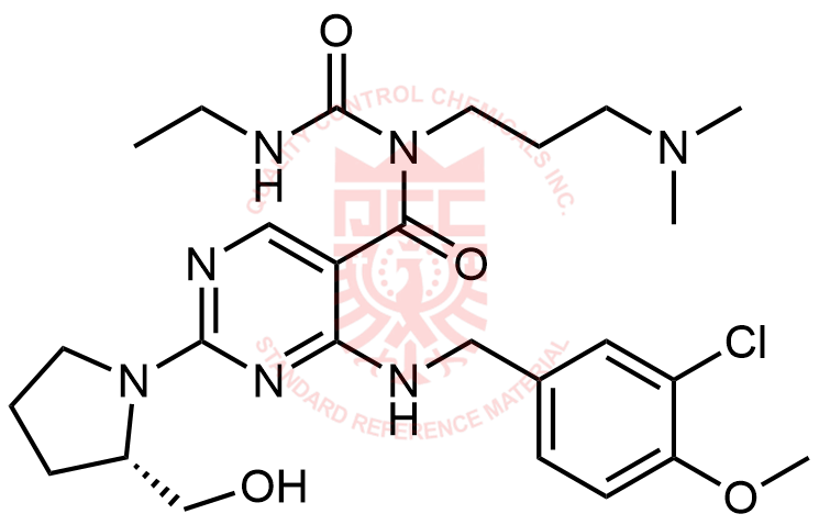 Synonyms: (S)-4-((3-chloro-4-methoxybenzyl)amino)-N-(3-(dimethylamino)propyl)-N-(ethylcarbamoyl)-2-(2-(hydroxymethyl)pyrrolidin-1-yl)pyrimidine-5-carboxamide