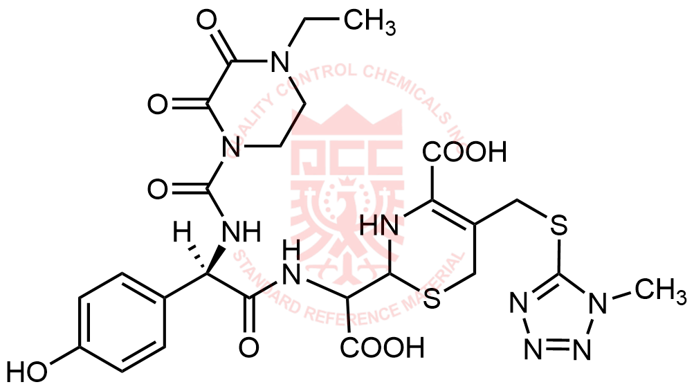 Synonyms: 2-(carboxy((R)-2-(4-ethyl-2,3-dioxopiperazine-1-carboxamido)-2-(4-hydroxyphenyl)acetamido)methyl)-5-(((1-methyl-1H-tetrazol-5-yl)thio)methyl)-3,6-dihydro-2H-1,3-thiazine-4-carboxylic acid