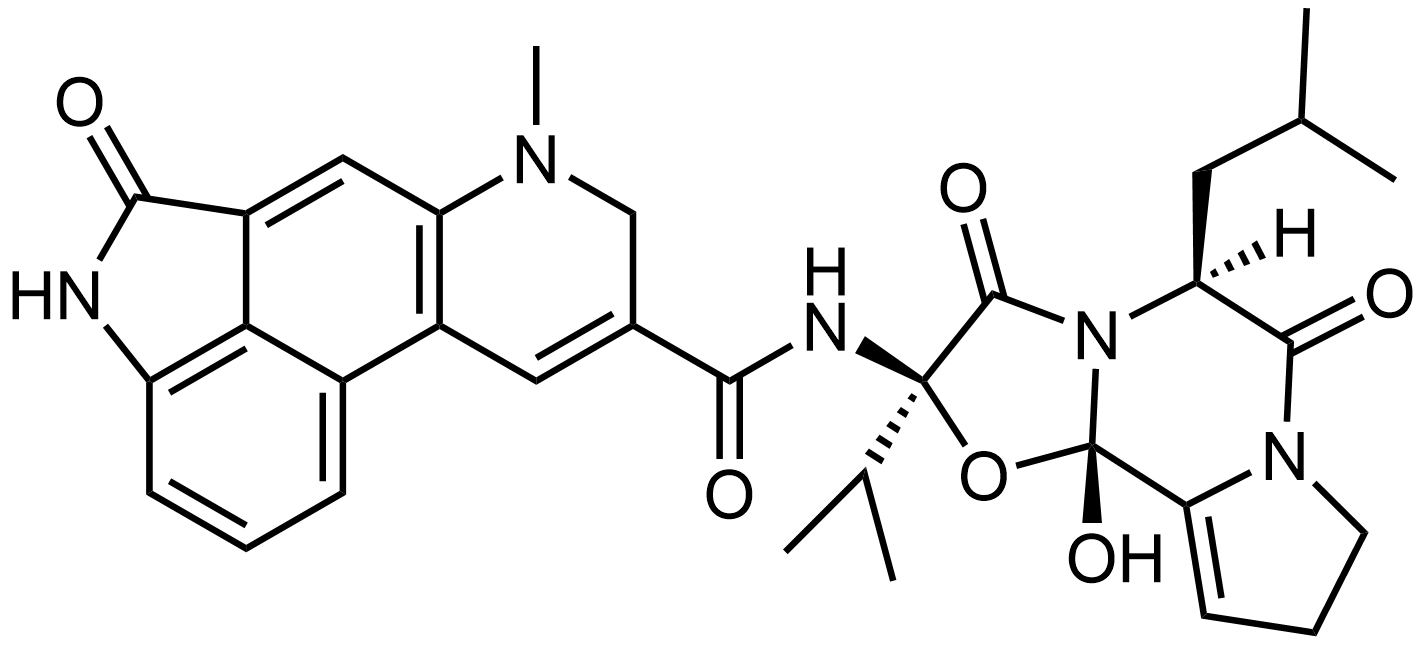 Synonyms: (6aR,9R)-5-chloro-N-((2R,5S,10aS,10bS)-10b-hydroxy-5-isobutyl-2-isopropyl-3,6-dioxooctahydro-8H-oxazolo[3,2-a]pyrrolo[2,1-c]pyrazin-2-yl)-7-methyl-4,6,6a,7,8,9-hexahydroindolo[4,3-fg]quinoline-9-carboxamide