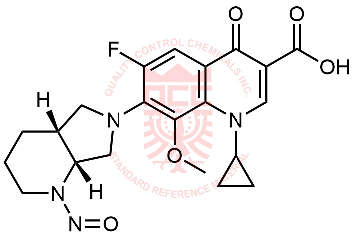Synonyms: 1-cyclopropyl-6-fluoro-8-methoxy-7-((4aR,7aR)-1-nitrosooctahydro-6H-pyrrolo[3,4-b]pyridin-6-yl)-4-oxo-1,4-dihydroquinoline-3-carboxylic acid