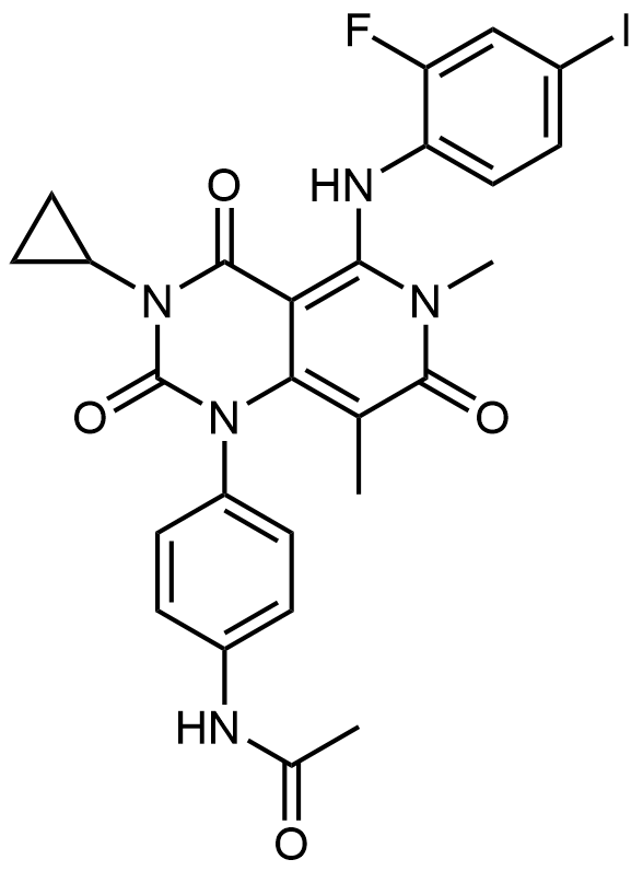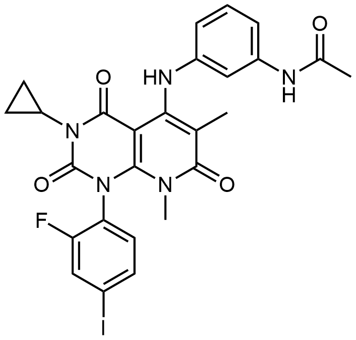 Synonyms: N-(4-(3-cyclopropyl-5-((2-fluoro-4-iodophenyl)amino)-6,8-dimethyl-2,4,7-trioxo-3,4,6,7-tetrahydropyrido[4,3-d]pyrimidin-1(2H)-yl)phenyl)acetamide