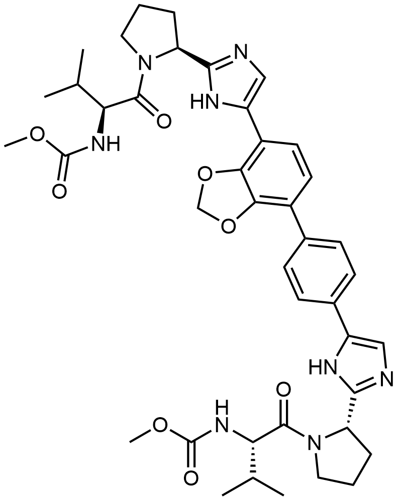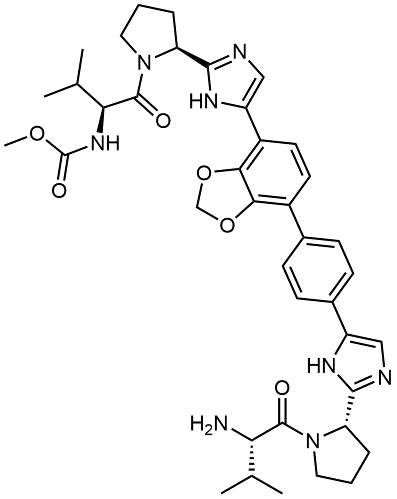 Synonyms: methyl ((S)-1-((S)-2-(5-(7-(4-(2-((S)-1-(L-valyl)pyrrolidin-2-yl)-1H-imidazol-5-yl)phenyl)benzo[d][1,3]dioxol-4-yl)-1H-imidazol-2-yl)pyrrolidin-1-yl)-3-methyl-1-oxobutan-2-yl)carbamate