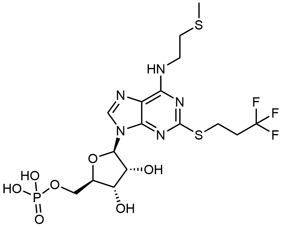 Synonyms: ((2R,3S,4R,5R)-3,4-dihydroxy-5-(6-((2-(methylthio)ethyl)amino)-2-((3,3,3-trifluoropropyl)thio)-9H-purin-9-yl)tetrahydrofuran-2-yl)methyl dihydrogen phosphate