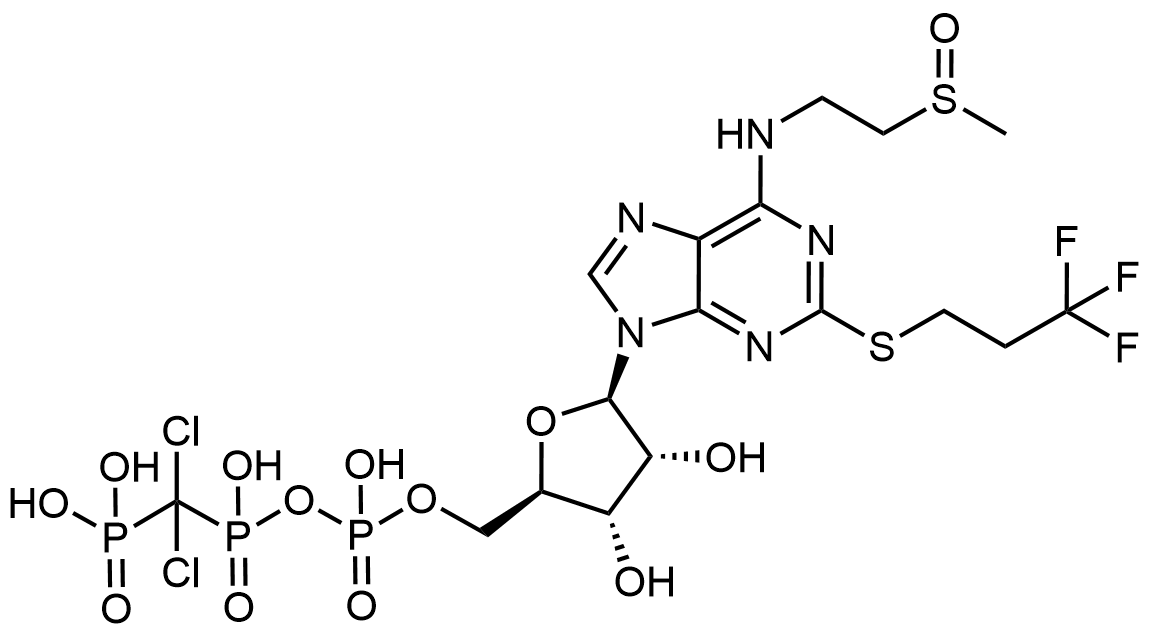 Synonyms: (dichloro((((((2R,3S,4R,5R)-3,4-dihydroxy-5-(6-((2-(methylsulfinyl)ethyl)amino)-2-((3,3,3-trifluoropropyl)thio)-9H-purin-9-yl)tetrahydrofuran-2-yl)methoxy)(hydroxy)phosphoryl)oxy)(hydroxy)phosphoryl)methyl)phosphonic acid