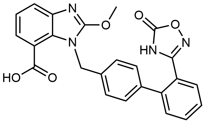 Synonyms: 2-methoxy-1-((2'-(5-oxo-4,5-dihydro-1,2,4-oxadiazol-3-yl)-[1,1'-biphenyl]-4-yl)methyl)-1H-benzo[d]imidazole-7-carboxylic acid