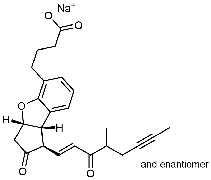 Synonyms: sodium 4-((1R,3aS,8bS)-1-((E)-4-methyl-3-oxooct-1-en-6-yn-1-yl)-2-oxo-2,3,3a,8b-tetrahydro-1H-cyclopenta[b]benzofuran-5-yl)butanoate/sodium 4-((1S,3aR,8bR)-1-((E)-4-methyl-3-oxooct-1-en-6-yn-1-yl)-2-oxo-2,3,3a,8b-tetrahydro-1H-cyclopenta[b]benzofuran-5-yl)butanoate