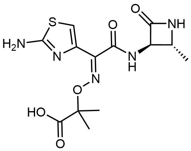 Synonyms: 2-((((E)-1-(2-aminothiazol-4-yl)-2-(((2R,3R)-2-methyl-4-oxoazetidin-3-yl)amino)-2-oxoethylidene)amino)oxy)-2-methylpropanoic acid