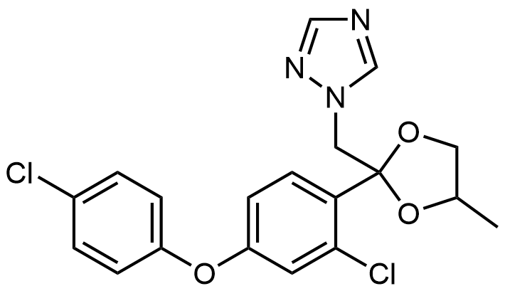 Synonyms: 1-((2-(2-chloro-4-(4-chlorophenoxy)phenyl)-4-methyl-1,3-dioxolan-2-yl)methyl)-1H-1,2,4-triazole