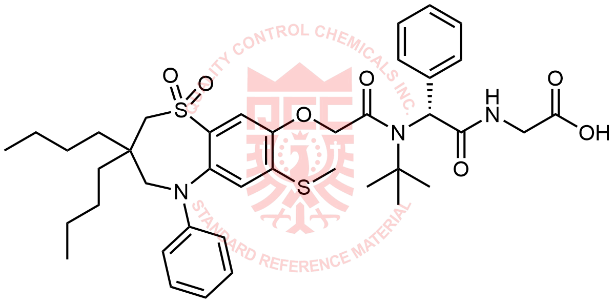Synonyms: (R)-(2-(N-(tert-butyl)-2-((3,3-dibutyl-7-(methylthio)-1,1-dioxido-5-phenyl-2,3,4,5-tetrahydrobenzo[b][1,4]thiazepin-8-yl)oxy)acetamido)-2-phenylacetyl)glycine