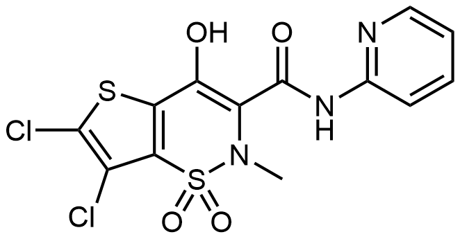 Synonyms: 6,7-dichloro-4-hydroxy-2-methyl-N-(pyridin-2-yl)-2H-thieno[2,3-e][1,2]thiazine-3-carboxamide 1,1-dioxide