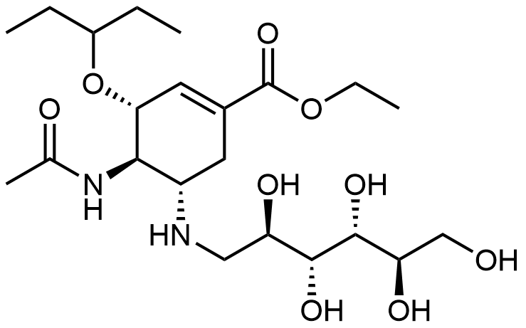Synonyms: ethyl (3R,4R,5S)-4-acetamido-5-(((2R,3R,4R,5R)-2,3,4,5,6-pentahydroxyhexyl)amino)-3-(pentan-3-yloxy)cyclohex-1-ene-1-carboxylate