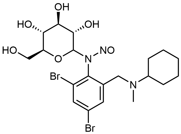 Synonyms: N-(2,4-dibromo-6-((cyclohexyl(methyl)amino)methyl)phenyl)-N-((3S,4R,5R,6S)-3,4,5-trihydroxy-6-(hydroxymethyl)tetrahydro-2H-pyran-2-yl)nitrous amide
