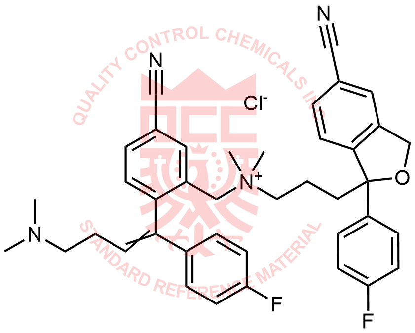 Synonyms: 3-(5-cyano-1-(4-fluorophenyl)-1,3-dihydroisobenzofuran-1-yl)-N-(5-cyano-2-(4-(dimethylamino)-1-(4-fluorophenyl)but-1-en-1-yl)benzyl)-N,N-dimethylpropan-1-aminium chloride