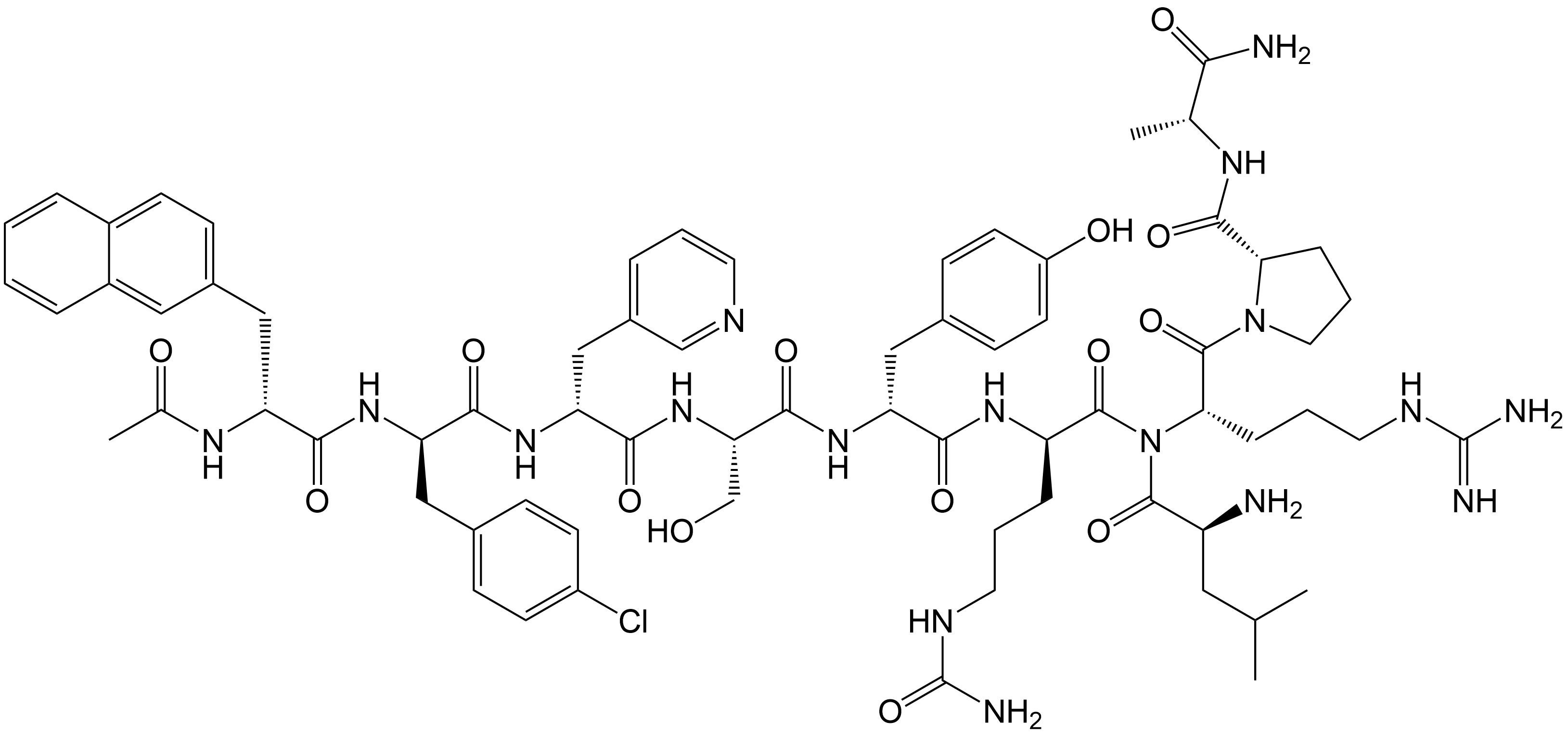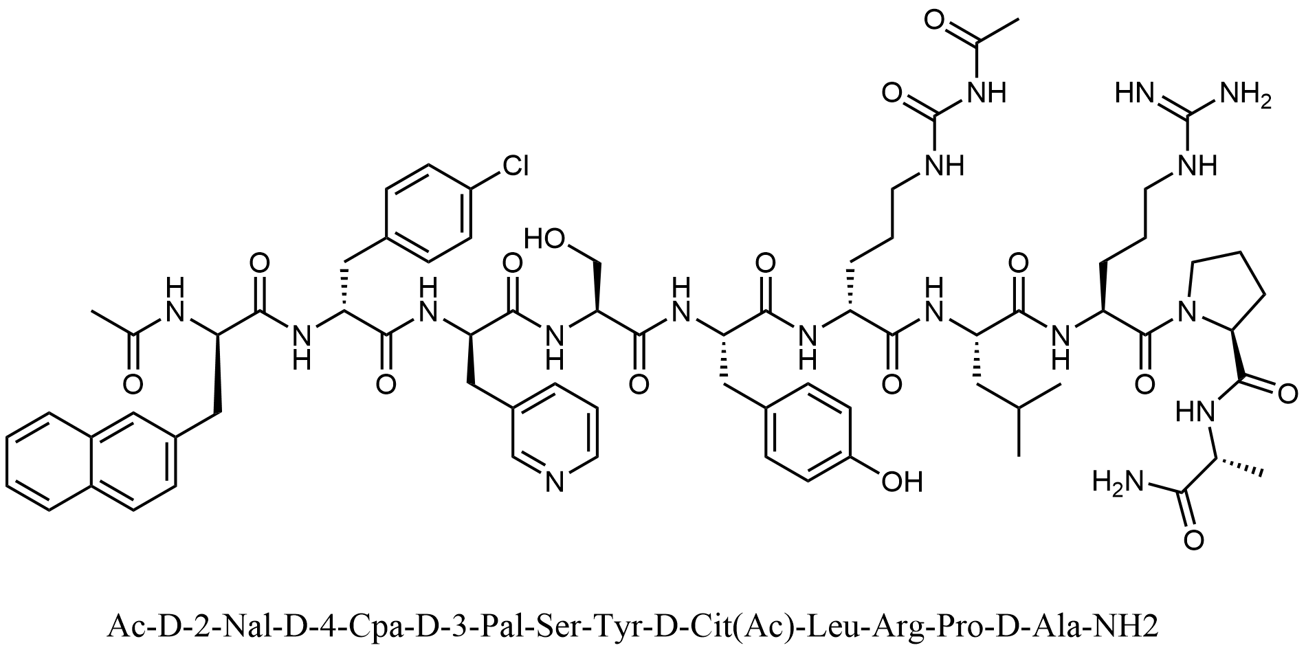 Synonyms: (S)-1-(((R)-2-((S)-2-((S)-2-((R)-2-((R)-2-((R)-2-acetamido-3-(naphthalen-2-yl)propanamido)-3-(4-chlorophenyl)propanamido)-3-(pyridin-3-yl)propanamido)-3-hydroxypropanamido)-3-(4-hydroxyphenyl)propanamido)-5-ureidopentanoyl)-L-leucyl)-N-((R)-1-amino-1-oxopropan-2-yl)pyrrolidine-2-carboxamide