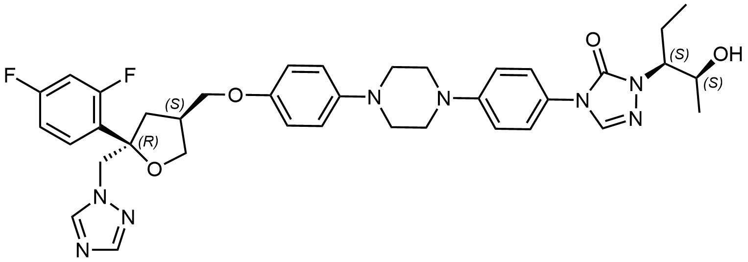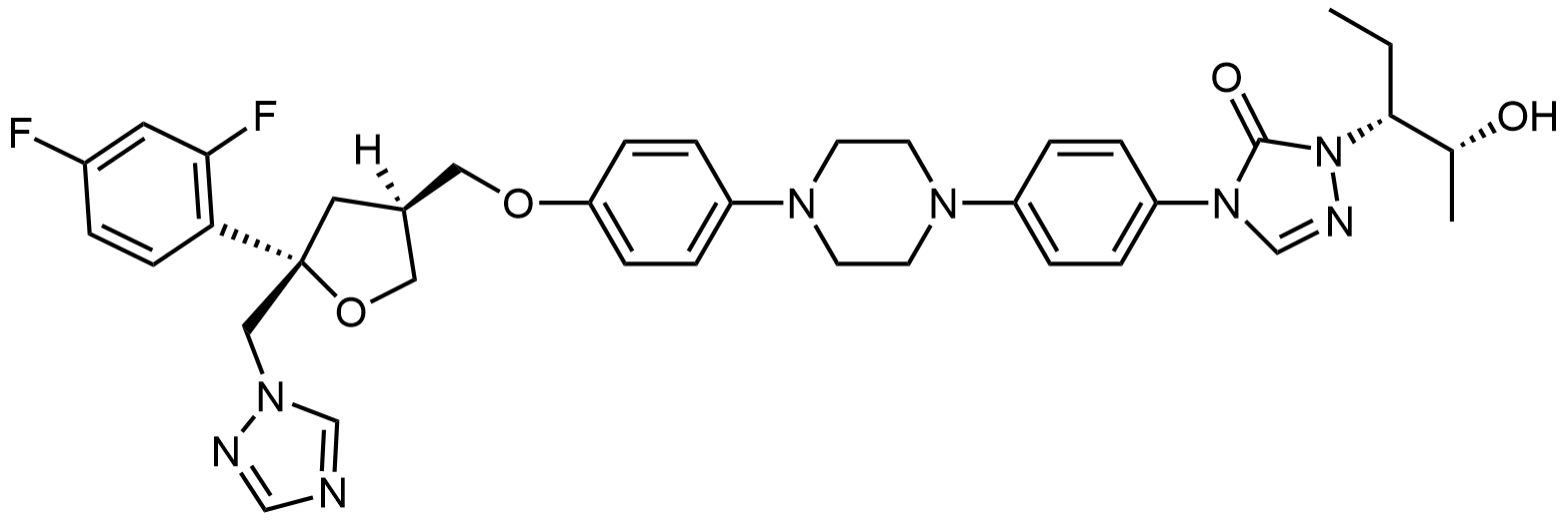 Synonyms: 4-(4-(4-(4-(((3R,5R)-5-((1H-1,2,4-triazol-1-yl)methyl)-5-(2,4-difluorophenyl)tetrahydrofuran-3-yl)methoxy)phenyl)piperazin-1-yl)phenyl)-1-((2S,3S)-2-hydroxypentan-3-yl)-1H-1,2,4-triazol-5(4H)-one