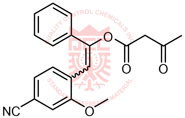 Synonyms: 2-(4-cyano-2-methoxyphenyl)-1-phenylvinyl 3-oxobutanoate
