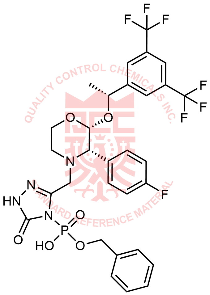 Synonyms: benzyl hydrogen (3-(((2R,3S)-2-((R)-1-(3,5-bis(trifluoromethyl)phenyl)ethoxy)-3-(4-fluorophenyl)morpholino)methyl)-5-oxo-1,5-dihydro-4H-1,2,4-triazol-4-yl)phosphonate