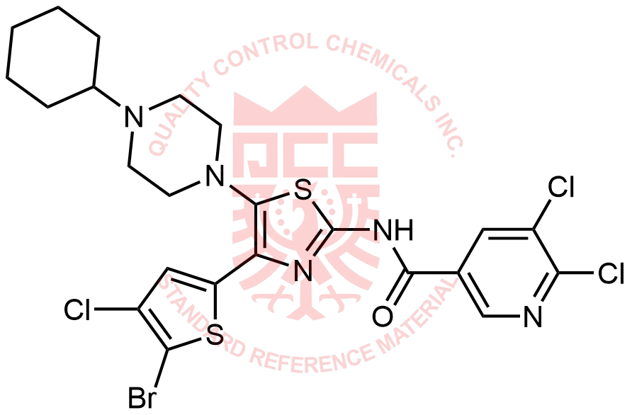 Synonyms: N-(4-(5-bromo-4-chlorothiophen-2-yl)-5-(4-cyclohexylpiperazin-1-yl)thiazol-2-yl)-5,6-dichloronicotinamide