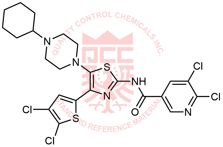 Synonyms: 5,6-dichloro-N-(5-(4-cyclohexylpiperazin-1-yl)-4-(4,5-dichlorothiophen-2-yl)thiazol-2-yl)nicotinamide
