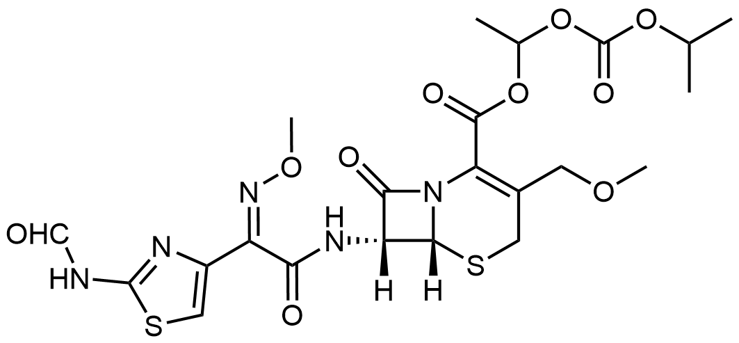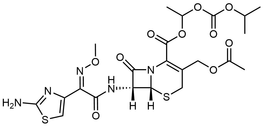 Synonyms: (6R,7R)-1-((isopropoxycarbonyl)oxy)ethyl 3-(acetoxymethyl)-7-((Z)-2-(2-aminothiazol-4-yl)-2-(methoxyimino)acetamido)-8-oxo-5-thia-1-azabicyclo[4.2.0]oct-2-ene-2-carboxylate
