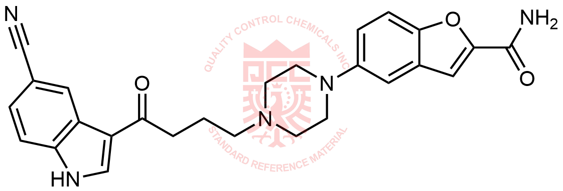 Synonyms: 5-(4-(4-(5-cyano-1H-indol-3-yl)-4-oxobutyl)piperazin-1-yl)benzofuran-2-carboxamide