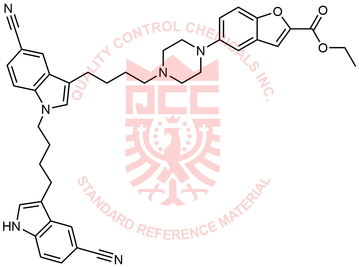 Synonyms: ethyl 5-(4-(4-(5-cyano-1-(4-(5-cyano-1H-indol-3-yl)butyl)-1H-indol-3-yl)butyl)piperazin-1-yl)benzofuran-2-carboxylate