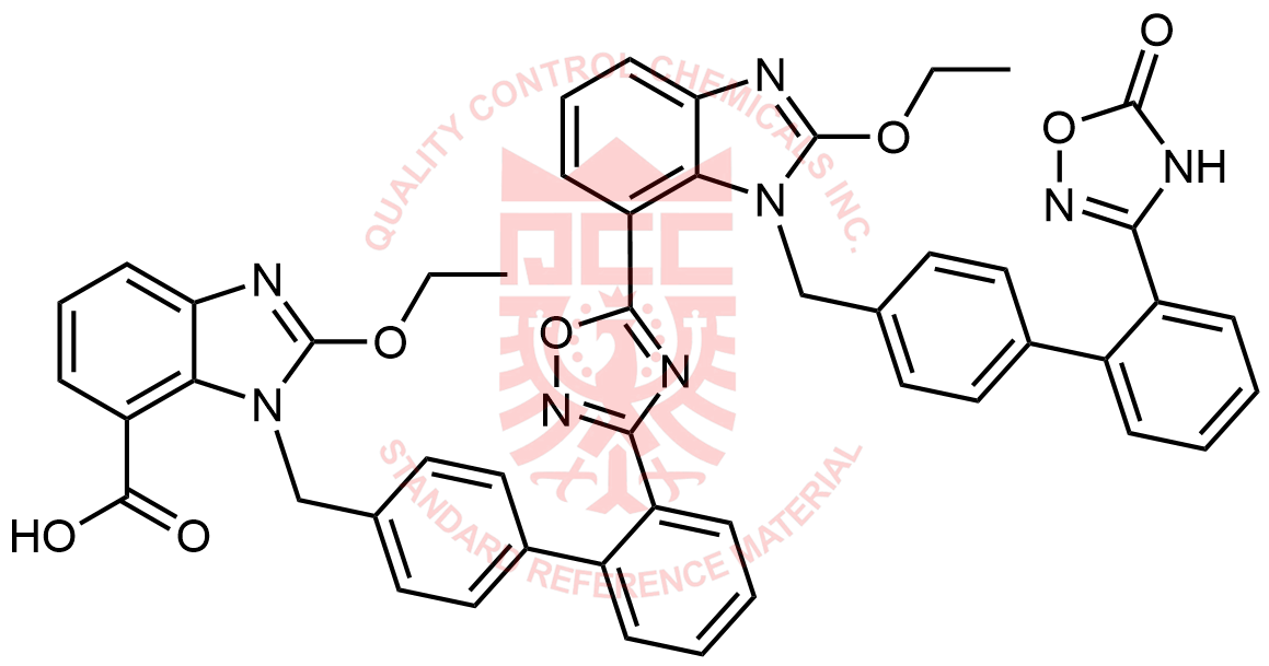Synonyms: 2-ethoxy-1-((2'-(5-(2-ethoxy-1-((2'-(5-oxo-4,5-dihydro-1,2,4-oxadiazol-3-yl)-[1,1'-biphenyl]-4-yl)methyl)-1H-benzo[d]imidazol-7-yl)-1,2,4-oxadiazol-3-yl)-[1,1'-biphenyl]-4-yl)methyl)-1H-benzo[d]imidazole-7-carboxylic acid