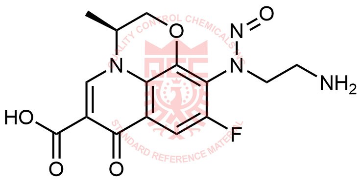 Synonyms: (S)-10-((2-aminoethyl)(nitroso)amino)-9-fluoro-3-methyl-7-oxo-2,3-dihydro-7H-[1,4]oxazino[2,3,4-ij]quinoline-6-carboxylic acid