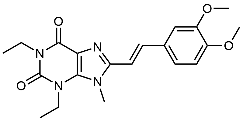 Synonyms: (E)-8-(3,4-dimethoxystyryl)-1,3-diethyl-9-methyl-3,9-dihydro-1H-purine-2,6-dione