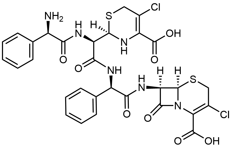 Synonyms: (6R,7R)-7-((R)-2-((R)-2-((R)-2-amino-2-phenylacetamido)-2-((R)-4-carboxy-5-chloro-3,6-dihydro-2H-1,3-thiazin-2-yl)acetamido)-2-phenylacetamido)-3-chloro-8-oxo-5-thia-1-azabicyclo[4.2.0]oct-2-ene-2-carboxylic acid