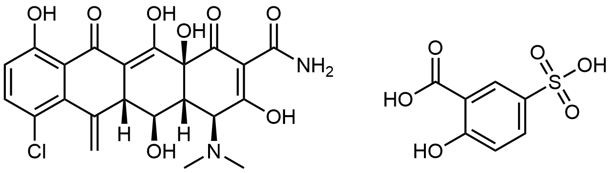 Synonyms: (4S,4aR,5S,5aR,12aS)-7-chloro-4-(dimethylamino)-3,5,10,12,12a-pentahydroxy-6-methylene-1,11-dioxo-1,4,4a,5,5a,6,11,12a-octahydrotetracene-2-carboxamide 2-hydroxy-5-sulfobenzoate