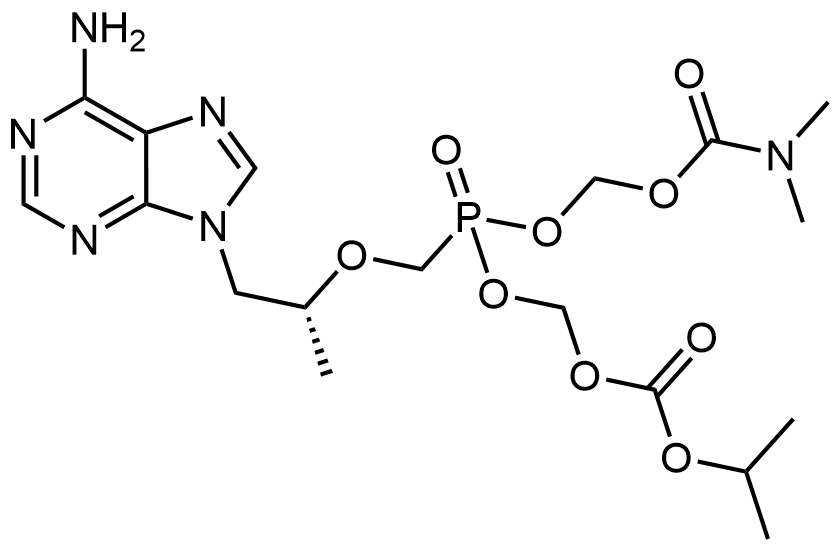 Synonyms: ((((((R)-1-(6-amino-9H-purin-9-yl)propan-2-yl)oxy)methyl)(((isopropoxycarbonyl)oxy)methoxy)phosphoryl)oxy)methyl dimethylcarbamate