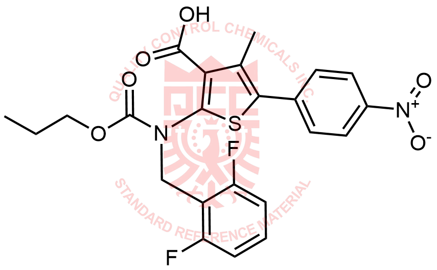 Synonyms: 2-((2,6-difluorobenzyl)(propoxycarbonyl)amino)-4-methyl-5-(4-nitrophenyl)thiophene-3-carboxylic acid