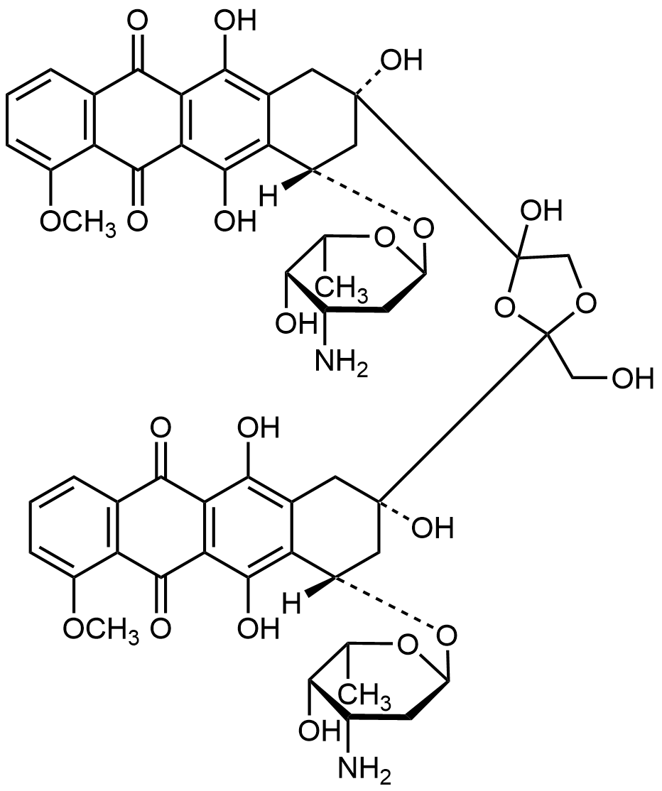 Synonyms: (8S,8'S,10S,10'S)-8,8'-(4-hydroxy-2-(hydroxymethyl)-1,3-dioxolane-2,4-diyl)bis(10-(((2R,4S,5S,6S)-4-amino-5-hydroxy-6-methyltetrahydro-2H-pyran-2-yl)oxy)-6,8,11-trihydroxy-1-methoxy-7,8,9,10-tetrahydrotetracene-5,12-dione)