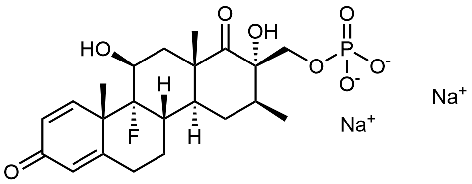 Synonyms: sodium ((2S,3S,4aS,4bS,10aS,10bR,11S,12aS)-10b-fluoro-2,11-dihydroxy-3,10a,12a-trimethyl-1,8-dioxo-1,2,3,4,4a,4b,5,6,8,10a,10b,11,12,12a-tetradecahydrochrysen-2-yl)methyl phosphate