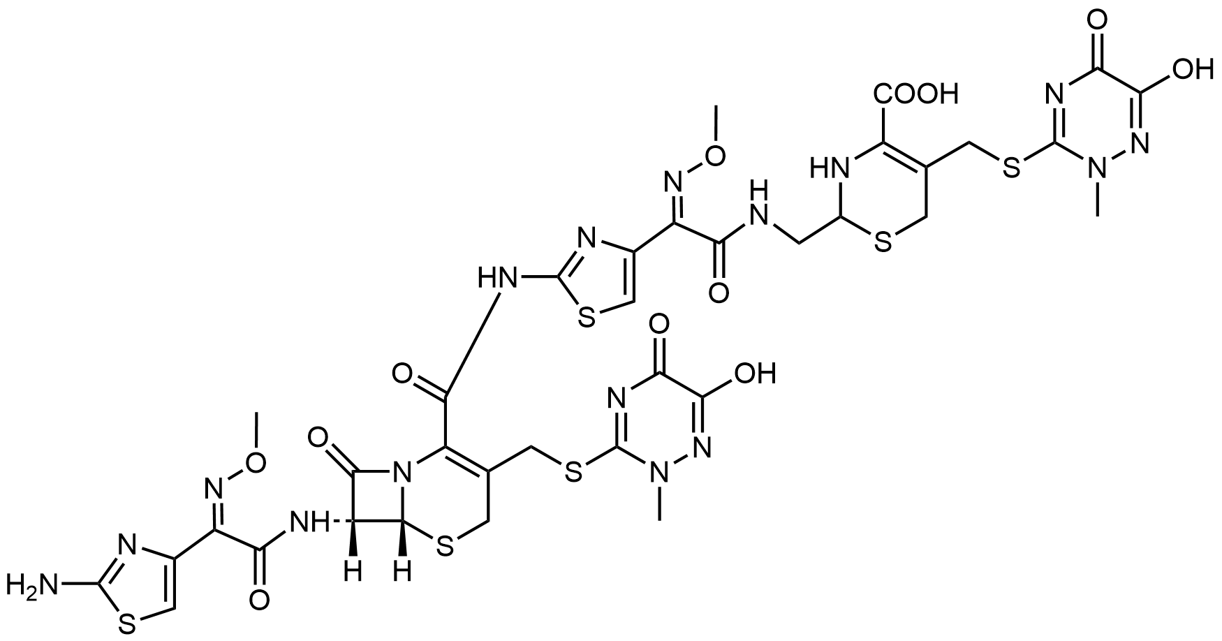 Synonyms: 2-(((Z)-2-(2-((6R,7R)-7-((Z)-2-(2-aminothiazol-4-yl)-2-(methoxyimino)acetamido)-3-(((6-hydroxy-2-methyl-5-oxo-2,5-dihydro-1,2,4-triazin-3-yl)thio)methyl)-8-oxo-5-thia-1-azabicyclo[4.2.0]oct-2-ene-2-carboxamido)thiazol-4-yl)-2-(methoxyimino)acetamido)methyl)-5-(((6-hydroxy-2-methyl-5-oxo-2,5-dihydro-1,2,4-triazin-3-yl)thio)methyl)-3,6-dihydro-2H-1,3-thiazine-4-carboxylic acid