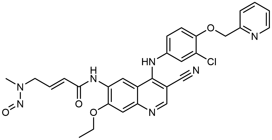 Synonyms: (E)-N-(4-((3-chloro-4-(pyridin-2-ylmethoxy)phenyl)amino)-3-cyano-7-ethoxyquinolin-6-yl)-4-(methyl(nitroso)amino)but-2-enamide